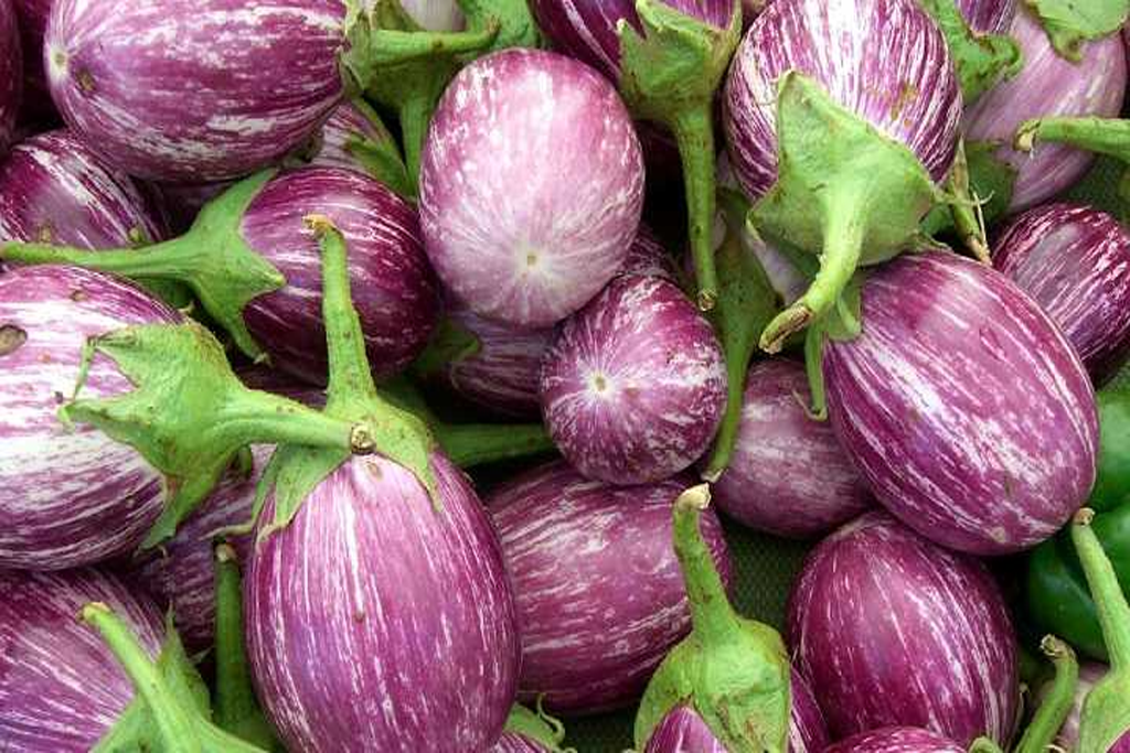 Среднеспелый сорт для открытого грунта и теплиц. От всходов до созревания 100-110 дней. Растение полураскидистое высотой 60-75 см. Плоды овально-грушевидной формы, длиной 15-17 см, диаметром 8-10 см. Окраска плода в технической спелости белая с ярко выраженными сиреневыми полосами, расположенными через 0,3-0,6 см по всей длине плода.