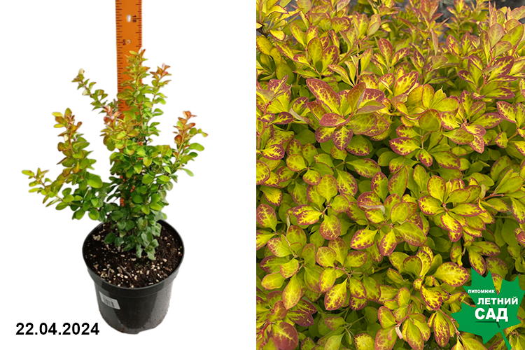 Декоративно-лиственный колючий кустарник с колоновидной, плотной формой кроны высотой 1,2-1,5 м. Листья лимонно-желтого цвета с красной каемкой. Цветёт в конце мая - начале июня. Цветки многочисленные, жёлтые, мелкие, располагаются одиночно или собраны в соцветия кисти. Плоды ягодообразные, светло-красные, созревают в сентябре. Светолюбив. В суровые зимы концы побегов могут подмерзать, но быстро восстанавливаются. Не требователен к почвам, подходят любые садовые почвы, хорошо дренированные, слабокислые, нейтральные. Плохо реагирует на застойное увлажнение. Хорошо переносит обрезку.