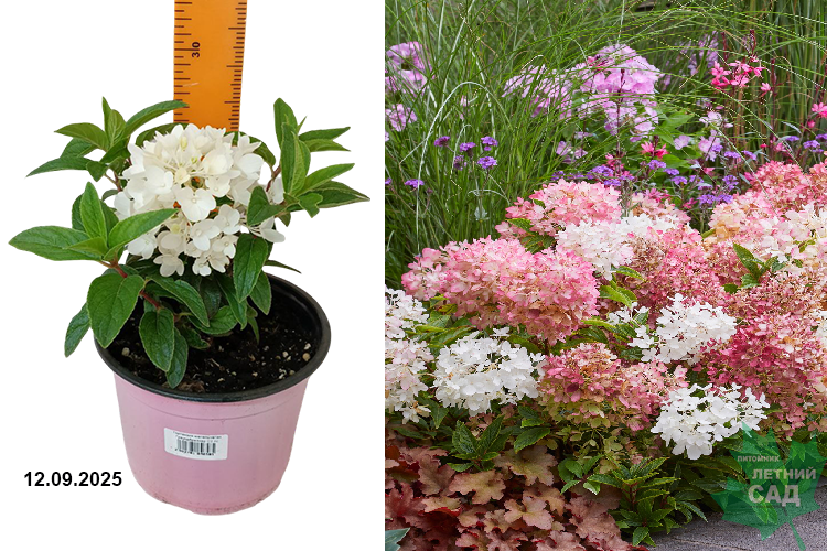 Гортензия метельчатая Граундбрейкер почвопокровная, компактная гортензия высотой всего 30-40 см шириной до 60 см. Куст густой, соцветия конусовидные 15-20 см, нежные воздушные распускаются белыми цветами в июле, к концу сезона в сентябре-октябре темно-розовые. Стебли прочные. Этот компактный сорт подходит для низких живых изгородей, для выращивания в малых садах, как в открытом грунте, так и в кашпо.