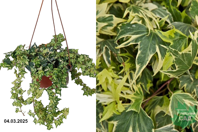 У разных представителей можно встретить разные варианты расцветки листьев: темно — зеленые, желтые, кремовые, серые, серебристые или золотистые. Кроме того, края листьев могут быть помечены желто-кремовой или бело-кремовой окантовкой. На стебле имеются воздушные корни, с помощью которых плющ цепляется за различные поверхности, разрастается и легко их оплетает. Период цветения обычно наступает, когда растение достигает возраста 10-12 лет. В период с августа по ноябрь, появляются желто-зеленые соцветия, по форме похожие на зонтики, с неприятным запахом. Позже на их месте вырастают ядовитые сине-черные ягоды, в диаметре достигающие не более 10 мм.