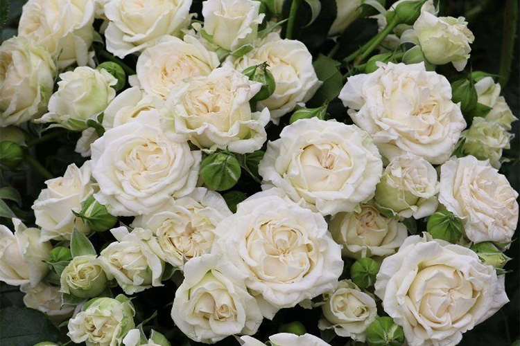 Прямостоячий пышный куст высотой до 60 см, хорошо облиственный. Листья мелкие темно зеленые, глянцевые. Цветы собраны в зонтикообразные соцветия, зацветают один за другим. Цветок небольшой, бокаловидный до 6 см в диаметре; махровый, состоит из 30 – 35 лепестков, с едва уловимым ароматом. Цветение непрерывное и обильное до заморозков. Сорт устойчив к дождям, морозам и заболеваниям. Сорт Вивиана широко используется для срезки, оформления свадебных букетов, для украшения клумб и садовых участков, для обрамления бордюров. Хорошо смотрится в одиночных и групповых посадках.