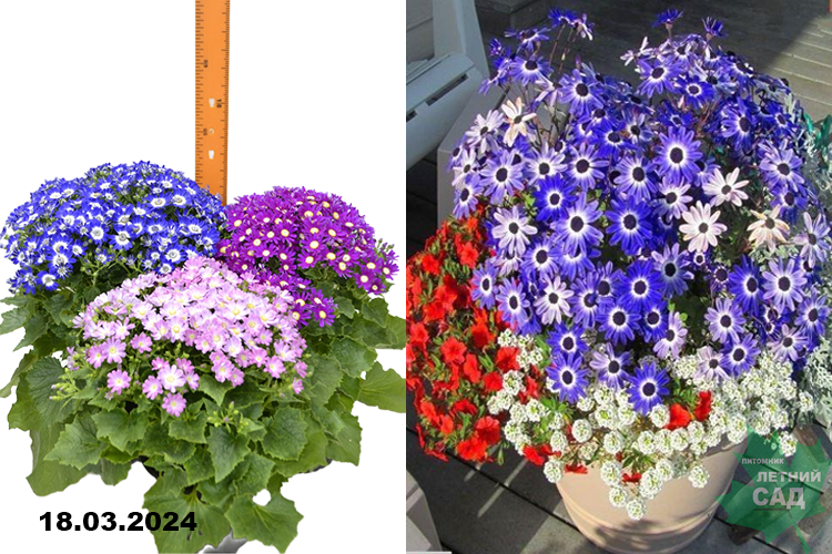 Привлекательное цветущее травянистое растение. Листочки бледно-зеленые, округлой формы. Соцветия-корзинки очень пышные, окрашены в различные насыщенные цвета. Наиболее часто встречаются растения с розовыми, либо синими цветочками, которые ближе к серединке меняют цвет на белоснежный. Место солнечное, но необходимо притенение в жаркие полуденные часы. Грунт необходим водопроницаемый, нейтральный. Возможно выращивать как на садовом участке, так и в горшке на подоконнике. Чаще всего высаживают на бордюрах и в составе сложных цветочных композиций на клумбах.